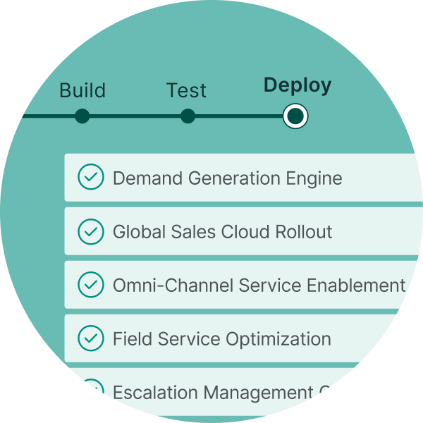 Delivery managers can oversee every customer engagement from a single unified platform. Create one partner account, set up dedicated workspaces per client, assign role-based access to team members, and manage all environments (Dev, Sandbox, Production) with AI-powered automation at every delivery stage.